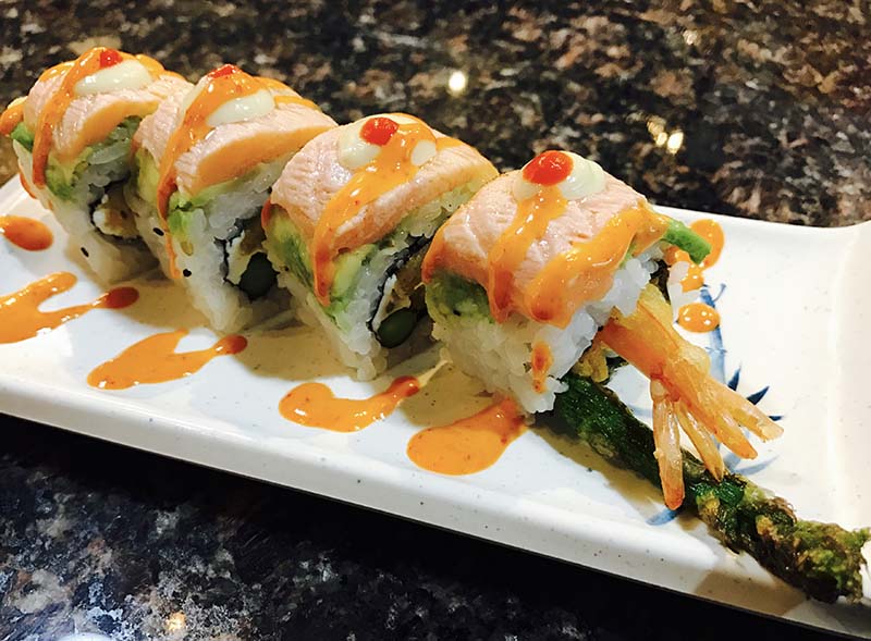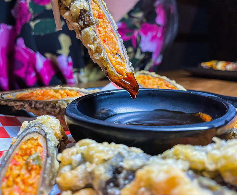 Seaweed wrapped around our house spicy crab meat, deep-fried until crispy, and served with spicy mayo and eel sauce.