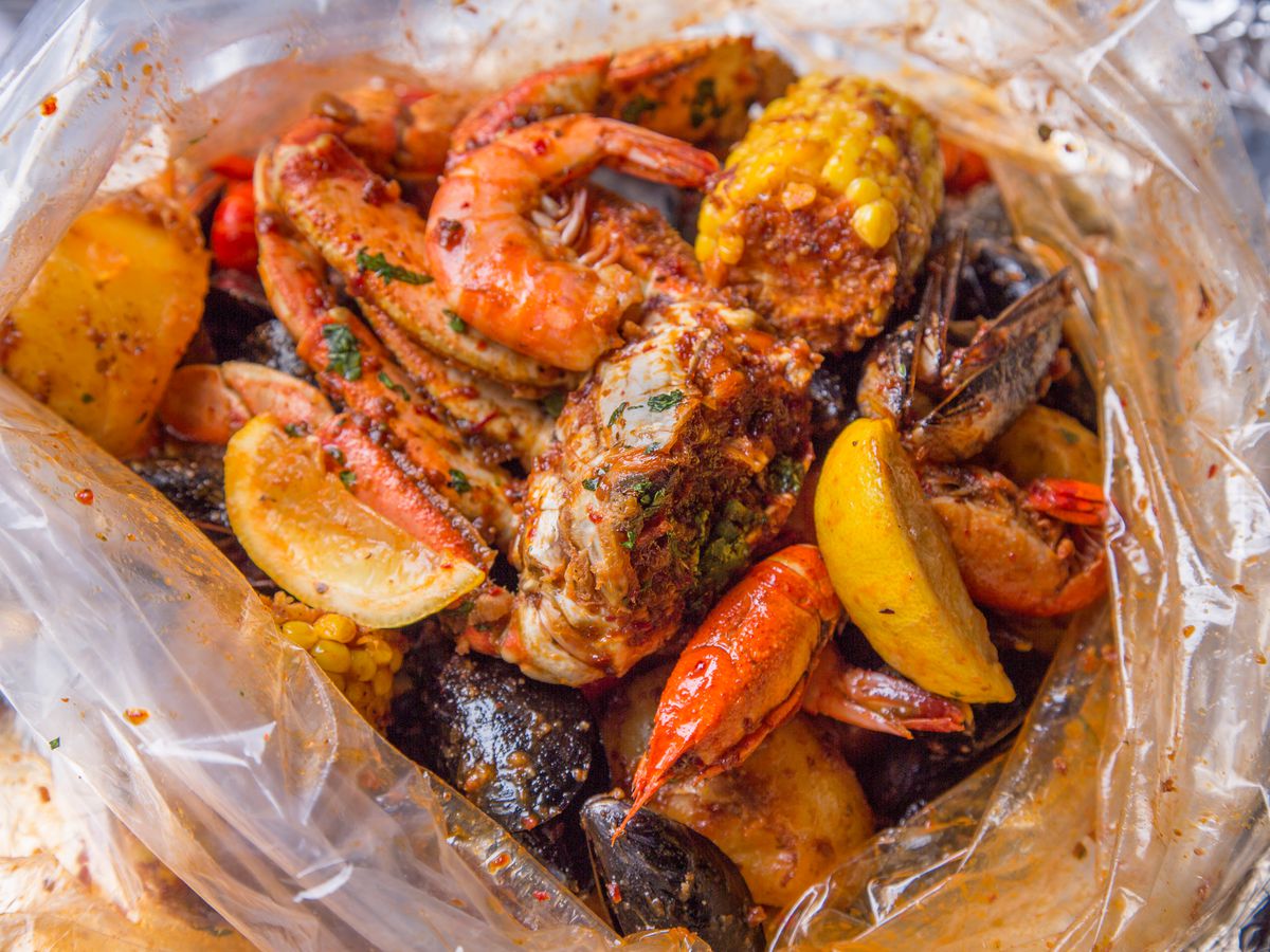 With the All-You-Can-Eat seafood boil, each customer can enjoy 1 cluster of snow crab, 1 order of cocktail shrimp, and unlimited options of shrimp with heads, green mussels, crawfish, and clams (maximum of 3 orders of each item per person per run).